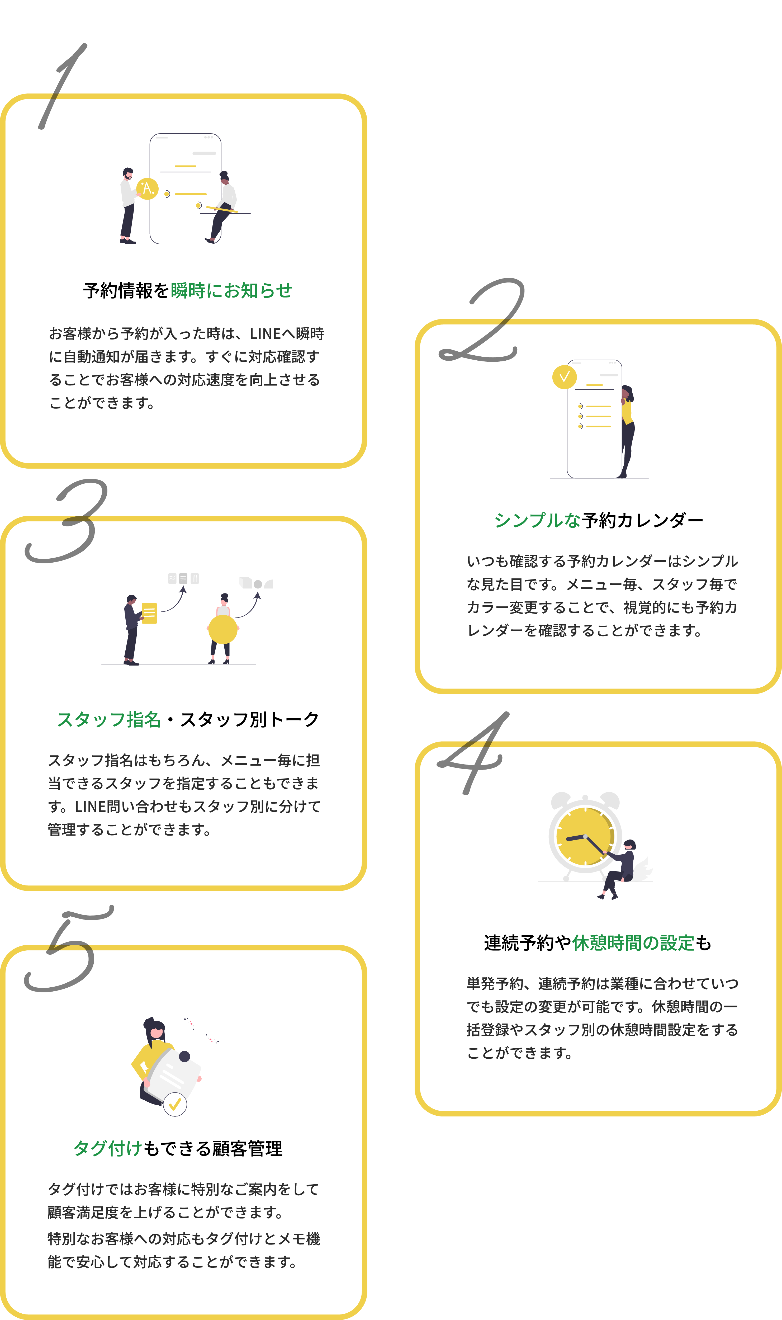 電話予約からLINEに誘導することで受付スタッフの時間を削減。営業時間外受付で24時間365日予約を自動化します。