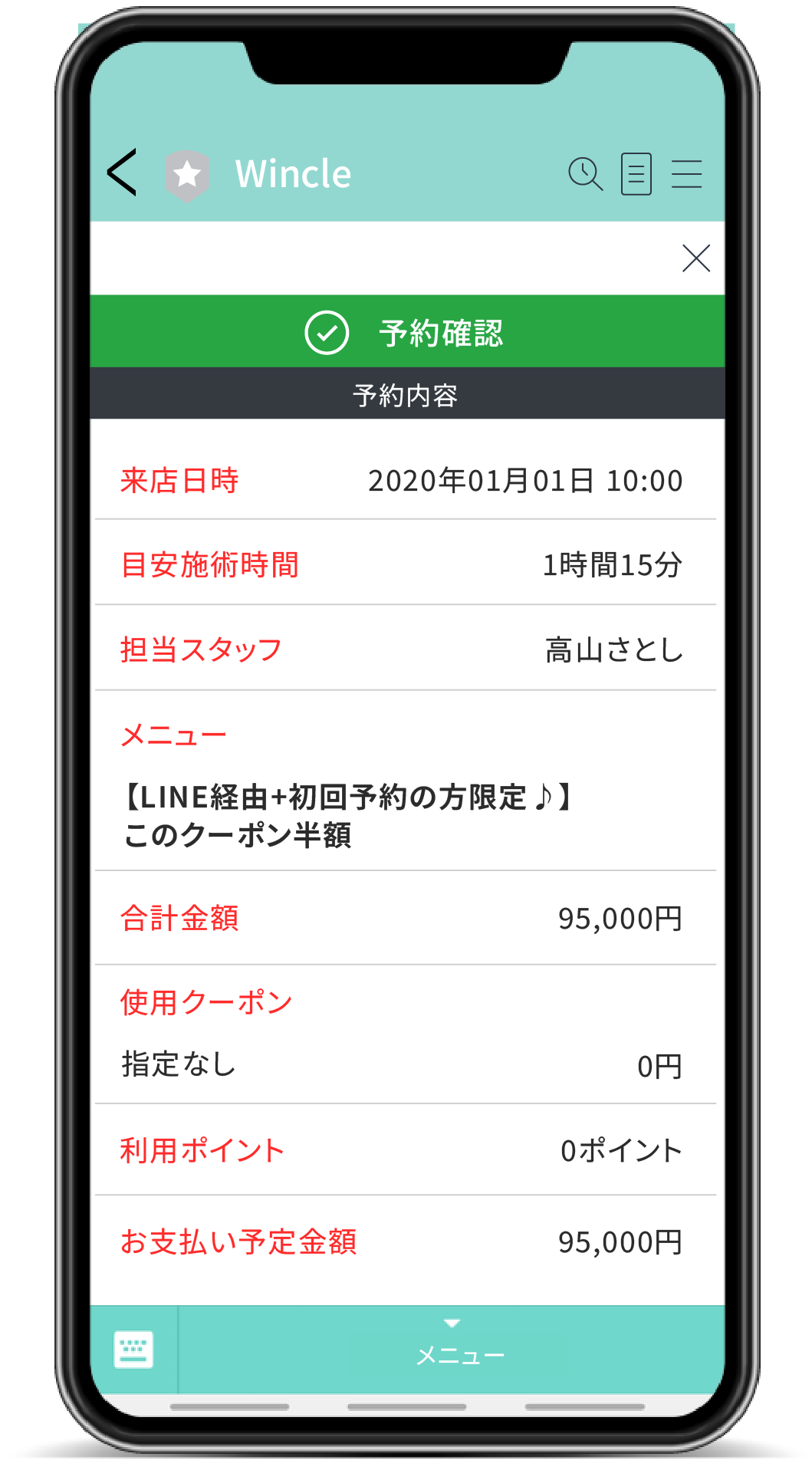 お客様から予約が入った時は、LINEへ瞬時に自動通知が届きます。すぐに対応確認することでお客様への対応速度を向上させることができます。